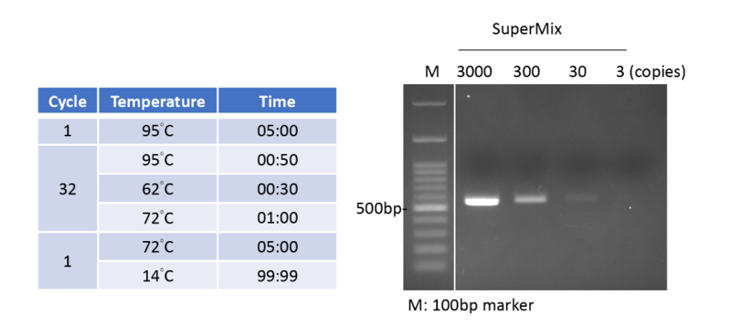 | Initial Denaturation | 2∼5 minutes at 94°C |